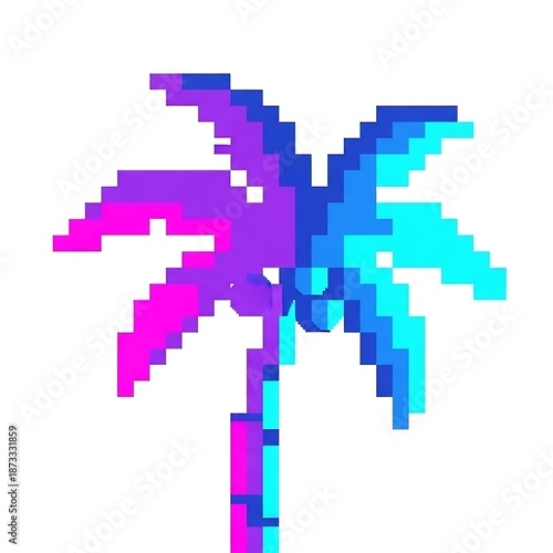 Pixel art colorful palm tree icon.