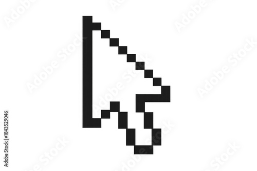 Pixel art cursor arrow icon for computer mouse pointer navigating digital interface on transparent background