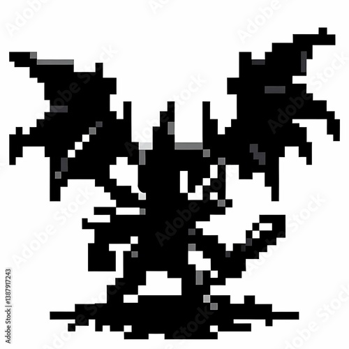 Pixel Art Shadow Dragon with Sword suitable for creative presentation