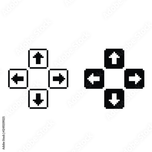 pixel Four arrow from the center icon. Vector pixel art arrows 8 bit logo for game digital navigation