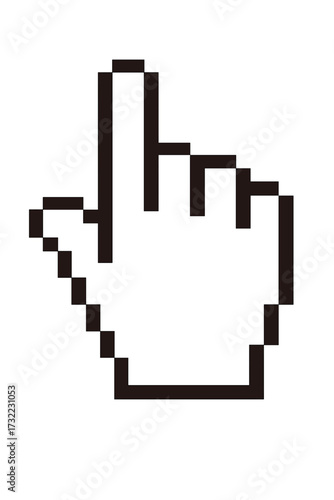 Pixel hand cursor pointer icon. Retro 8-bit style computer mouse symbol for click and selection. Vector graphic illustration for user interface, web design, or digital projects.