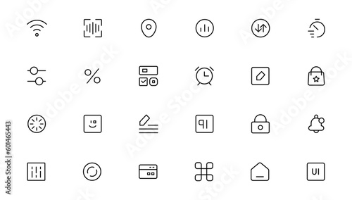Pixel Perfect. Basic User Interface Essential Set. Line Outline Icons. For App, Web, Print. Editable Stroke. Pixel Stroke Wide with Round Cap and Round Corner