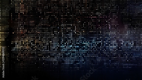 Pixelated Data Stream: A complex and dynamic pixelated data stream forms a visually intriguing digital backdrop, composed of various blocks in shades of colors.