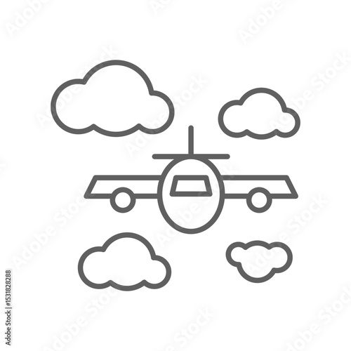 Plane Flying Through Clouds Icon Outline Thin Line Editable Stroke Design