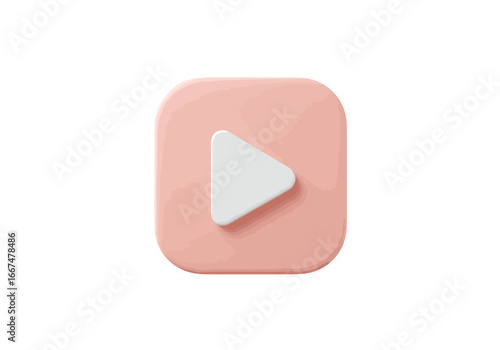 Play Button Icon: 3D Rendered Pink Square with White Triangle.