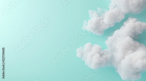 playful 3D render of cartoon clouds against soft turquoise background, creating whimsical and cheerful atmosphere. Perfect for various creative projects