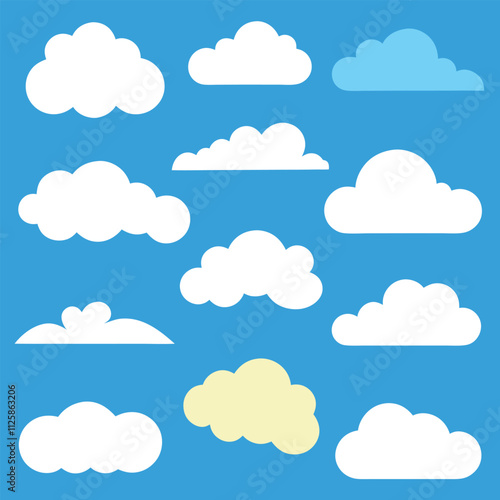 Playful Cloud Vector Set on Blue Background.