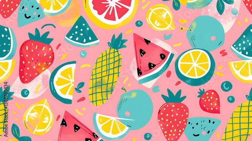 Playful Tropical Fruit Pattern Illustration