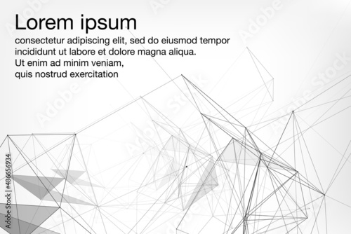 Plexus Polygonal Molecule Dots Lines Structure Data Mesh Flow Vector Background. Black White Illustration for Infographic, Presentation, Report Copy Space Texture.