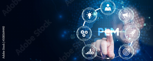 PLM Product lifecycle management system technology concept. Technology, Internet and network concept.