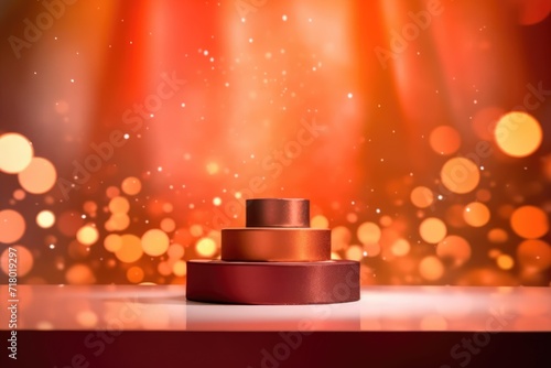 Podium with background soft bokeh, podium for product presentation, geometric shape for product display presentation, stage showcase, promotion display.