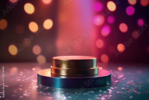 Podium with background soft bokeh, podium for product presentation, geometric shape for product display presentation, stage showcase, promotion display.