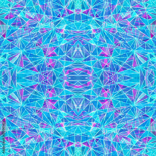 Polygon. Watercolor mosaic. Bright summer pattern with watercolor triangles.