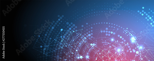 Polygonal science background with connecting dots and lines. Digital data visualization.