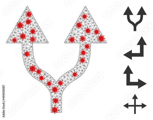 Polygonal split arrows up in lockdown style. Polygonal carcass split arrows up image in low poly style with combined linear items and red infection centers.