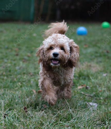 Poodle Mix Running in Yard
