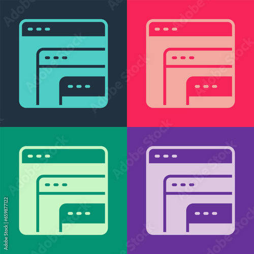 Pop art Software, web developer programming code icon isolated on color background. Javascript computer script random parts of program code. Vector
