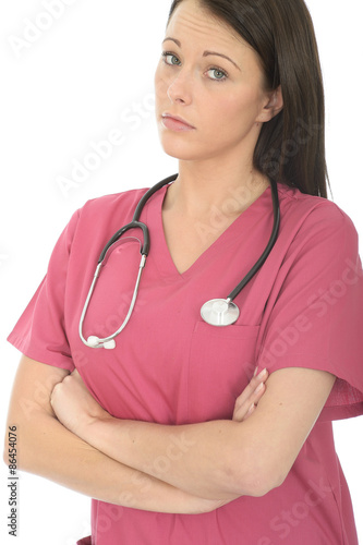 Portrait Of A Beautiful Young Female Doctor Looking With Disbelief