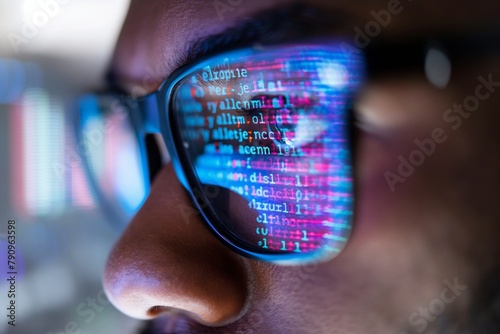 Portrait of Software Engineer Working on Computer, software engineer, working on a computer closeup, a glass closeup of a software engineer, digital nomad, developer background, coder