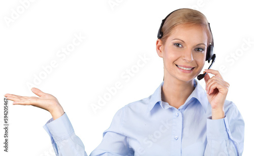 Portrait of woman with headphones, call center or support concept