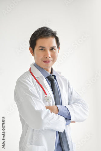 Portrait of Young Asian male Doctor is smiling.