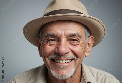 Portrait view of a regular happy smiling Cuba old man, ultra realistic, candid, social media, avatar image, plain solid background