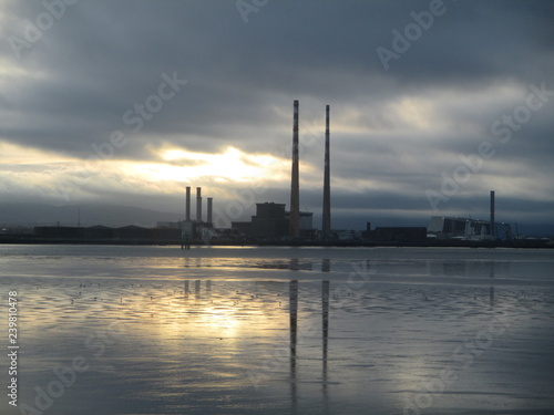 power plant at sunset