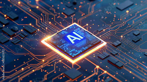 powerful computer processor microchip with the word representing artificial intelligence, AI technology, artificial intelligence, super computer, futuristic technology, network, cyber