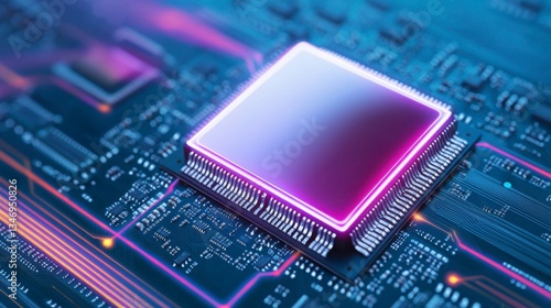 Powerful quantum AI processor chip on a PCB motherboard with glowing data streams symbolizing advanced data processing and artificial intelligence innovation , Minimalism Clean and clear background
