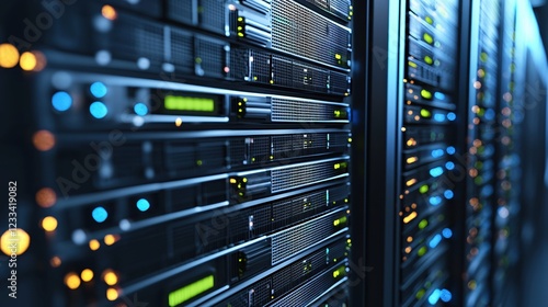 Powerful Server Racks Data Center Technology Blue Lights Network Infrastructure