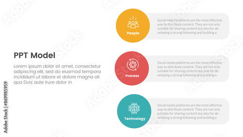 PPT framework people process technology infographic 3 point with vertical circle shape on stack layout for slide presentation