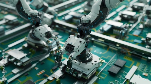 Precision Automation Robotic Arms in Action on Electronics Assembly Line