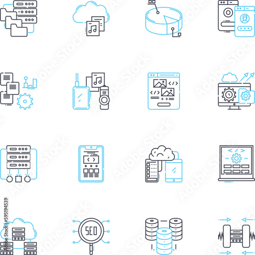 Predictive analytics linear icons set. Forecasting, Data-driven, Machine learning, Modeling, Insights, Algorithms, Optimization line vector and concept signs. Intelligence,Behaviors,Patterns outline