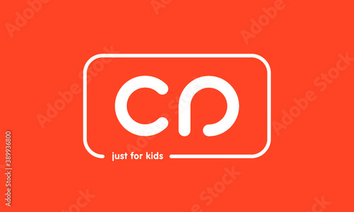 Premade framed kids logo initials monogram kids modern soft on red background