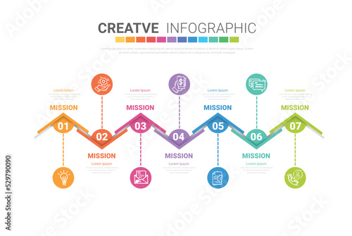 Presentation business concept with 7steps for week, Can be used for workflow layout, diagram, business step options, banner, web design. Vector eps 10.
