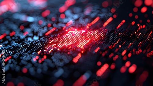 Preventing Cyber Attacks: Cybersecurity for Hacking concept. Digital visualization of red and blue data patterns with depth.