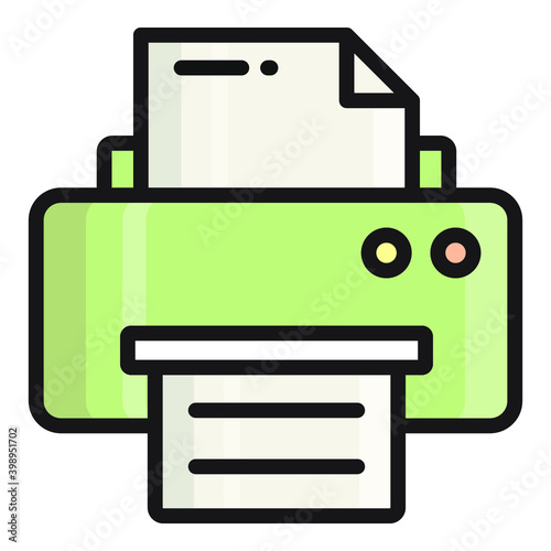 printer flat outline icon, school and education icon