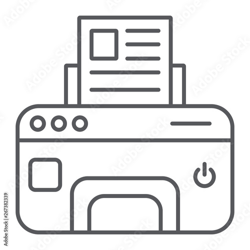 Printer thin line icon, device and print, fax sign, vector graphics, a linear pattern on a white background.