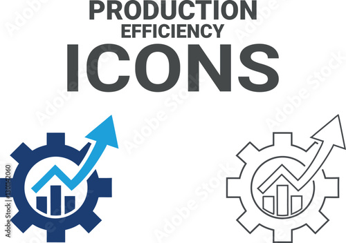 Production efficiency icons. Containing production, logistics, supply chain, manufacturing, planning, inventory management, strategy, customer satisfaction and cost icons. Solid icon collection.