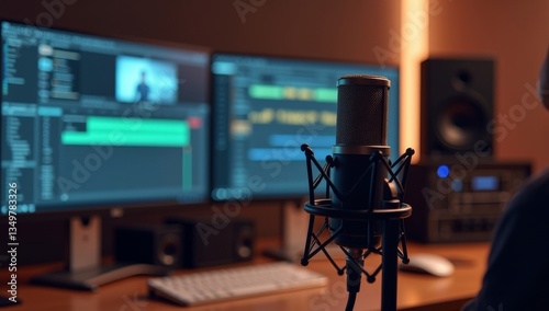 Professional microphone in the recording studio.