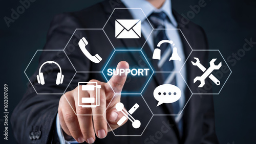 Professional providing technical support and customer service with modern digital interface access solutions