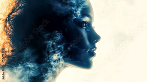 Profile of a woman blended with ethereal smoke, creating an artistic fusion of portraiture and abstract elements.
