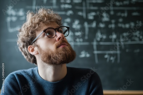 Profile view of a student looking forward with a thoughtful expression.