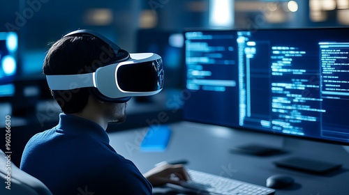 Programmer debugging database tools, virtual reality interface, sleek modern setup