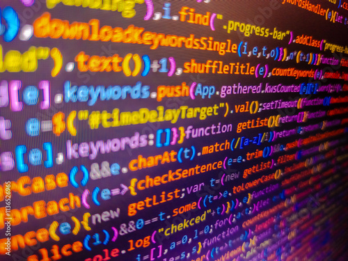 Programmer developer screen concept. Software computer programming code and circuit board abstract technology background. Source code by software engineer. Programming concept. Computer script.