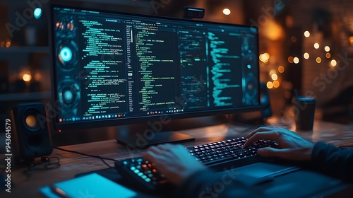 Programmer Hands Typing on a Keyboard, With Lines of Code Displayed on a Computer Screen