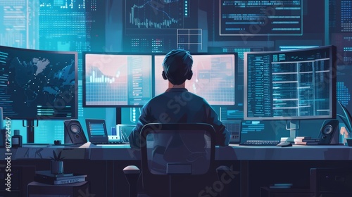 Programmer integrating big data with AI for e-commerce project, workspace background