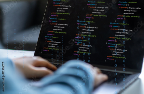 Programmer use laptop with cybersecurity technology design websites on internet network developer, digital, data analytics, cyberspace, web development, coding, software engineer, DevOps.AI chatbot