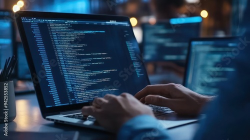 Programmer working late at night on a software project