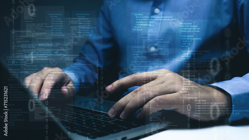 Programmers and cyber security concept.Programmer working on laptop computer technologies design websites and security in Cyberspace.